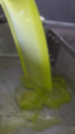 We harvest our olives early in the season, in mid- to late-October. This ensures that we get the highest quality oil, that maintains its beneficial properties for longer. We hand-pick our olives, sometimes using a comb for the higher branches. In 2017 we used a new gadget, the 'olive tickler', for the first time, and this helped us speed up. Hand-picked olives are best, as they do not get bruised, and therefore do not start to oxidise. We store them in fruit crates, so the fruit does not get too hot or crushed under the weight of fellow olives. We take the olives to the local mill, where they are placed in big, shallow 'bins' and are milled within 24 hours.